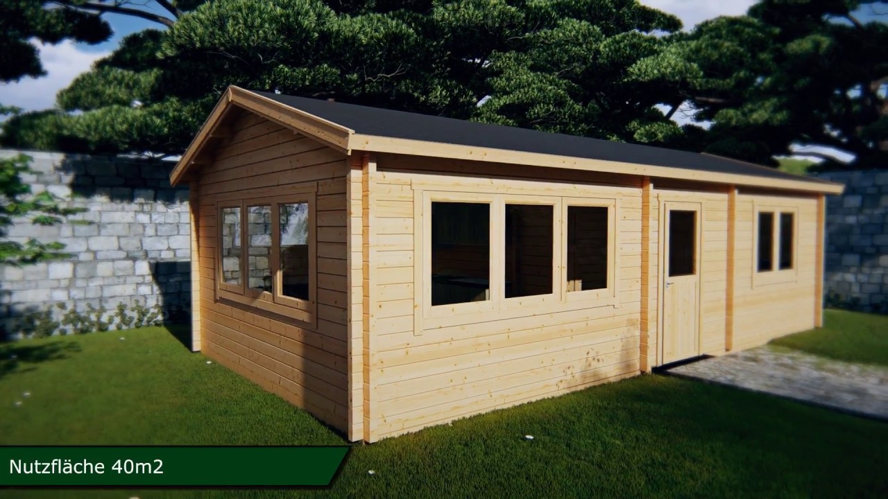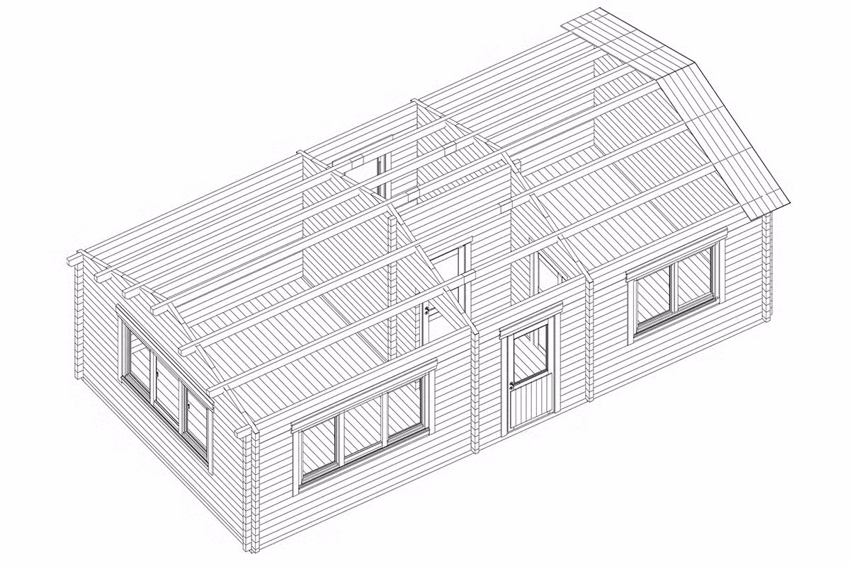 Das Blockhaus “Hansa Holiday H” eignet sich nicht nur als Ferienhaus, sondern auch als Gartenbüro für mehrere Personen oder großzügige Gartenlounge mit Hobbyraum. Es verfügt über einen zentralen Flur, von welchem drei unterschiedlich große Räume betreten werden können. Dabei kann es sich beispielsweise um ein Wohnzimmer, ein Schlafzimmer und ein Badezimmer handeln. 70 mm starke Wandbohlen, 28 mm starke Bodendielen, doppelt verglaste Türen und Fenster sowie Metallstützen, die in allen vier Ecken in die gesamte Wand eingelassen sind, garantieren die Stabilität und Energieeffizienz von Hansa Holiday H. Unser professionelles Montageteam kann das Blockhaus innerhalb von drei Tagen bauen, mit unserer detaillierten Aufbauanleitung und einer Hilfskraft benötigen Sie für den Aufbau etwa sechs Tage.
