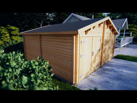 Die Doppelgarage “Hansa E” ist eine Fertiggarage aus Holz und bietet genügend Platz für zwei große Autos. Neben den Doppeltoren verfügt sie außerdem über eine Einzeltür an der Seite. Doppelt verglaste Fenster und 44 mm starke Wände verhindern plötzliche Temperaturschwankungen und sorgen zusammen mit vier Metallstäben im gesamten Verlauf der Wand für Stabilität und Langlebigkeit.