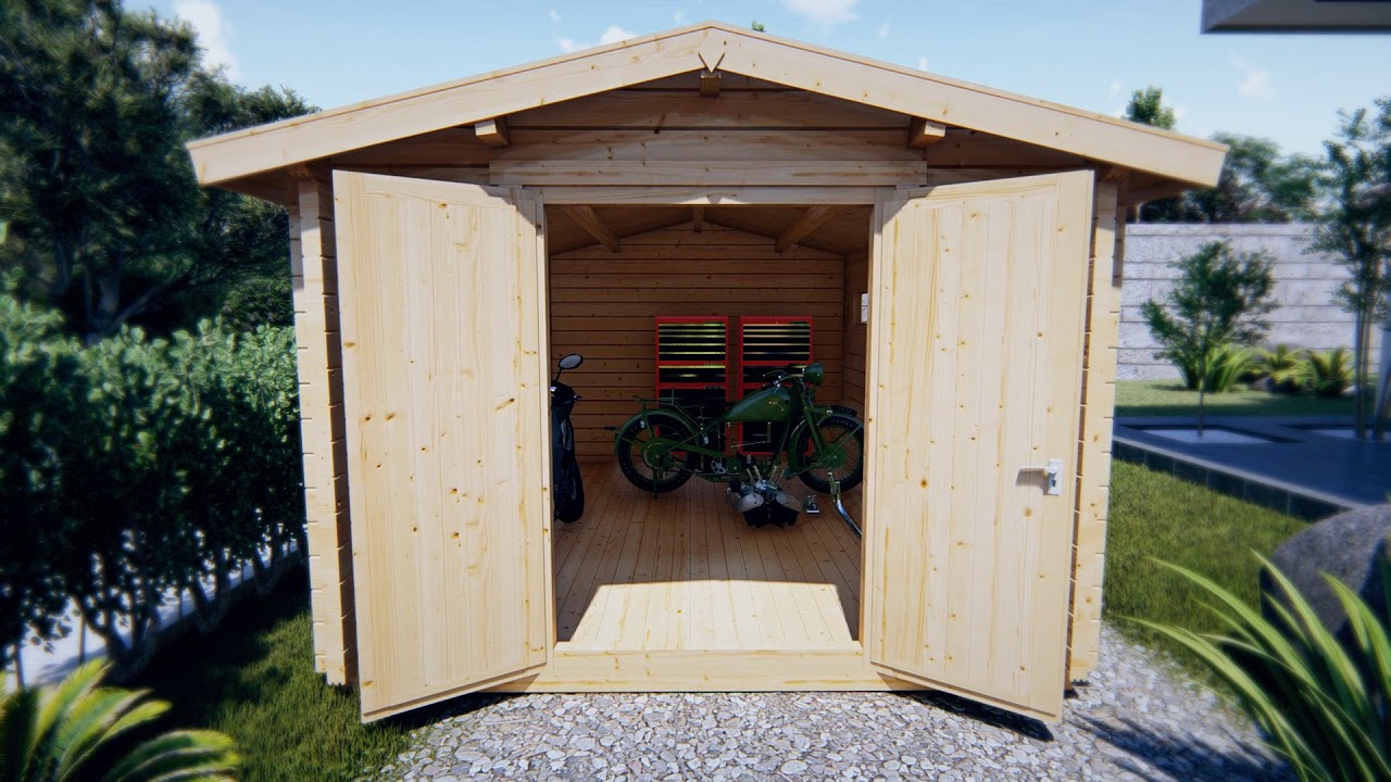 Das Gartenwerkstatt Eva F verfügt über einen 12 m² großen Innenraum, eine fensterlose Doppeltür und zwei kleine, öffenbare Fenster, die im oberen Bereich der Wand angebracht sind. So wird das Gartenhaus mit Tageslicht und frischer Luft versorgt, was das Werken und Überwintern von Pflanzen erleichtert, und gleichzeitig werden Einbrüche erschwert. 44 mm dicke Wände mit verstärkenden Metallstangen und doppelt verglaste Fenster verleihen dem Gartenhaus Stabilität und Sicherheit.