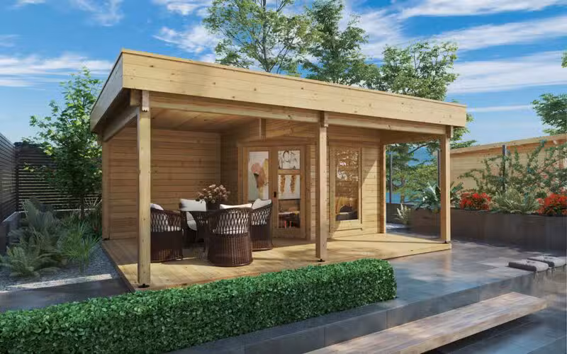 Gartenhaus mit Terrasse & Vordach „Remo 3“ 5x4m