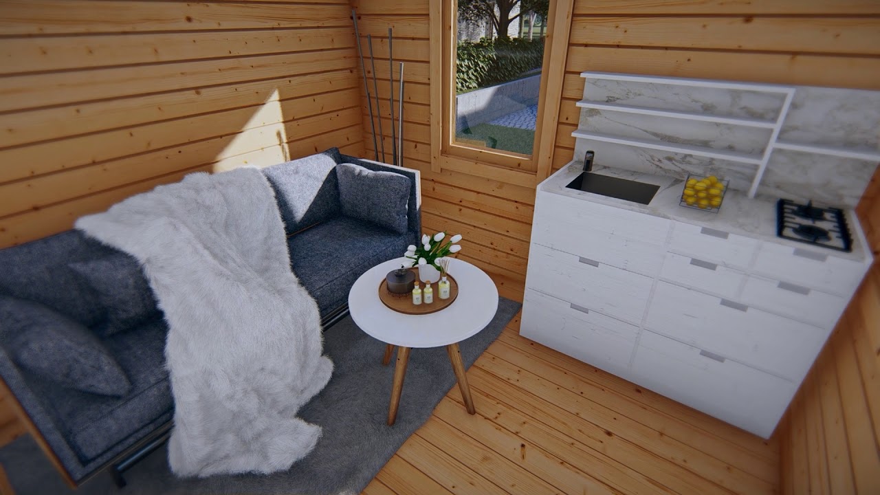 “Oklahoma” ist ein ideales Wochenendhaus oder Ferienhaus für ein Paar oder eine Familie mit ein oder zwei Kindern. Das 26 m² große Erdgeschoss verfügt über einen Flur, ein Schlafzimmer sowie eine Dusche mit WC. Außerdem können Sie die 2 x 5 m große Mansarde als Schlafplatz benutzen. Die 9 m2 große Außenterrasse aus Holz ist im Preis inbegriffen. Genießen Sie den Sommer!