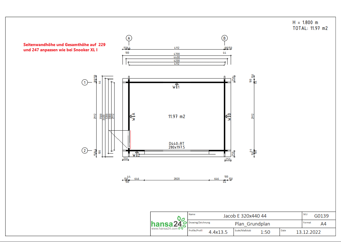 Die Hansagarten24 GmbH stellt keine Standsicherheitsnachweise (Statik) für Gartenhäuser zur Verfügung.