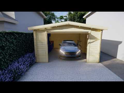 Die Holzgarage “Deluxe A” ist eine der kleinsten Ausführungen unserer Premium-Reihe, lässt aber trotzdem noch etwa einen Meter Platz auf beiden Seiten des Autos. Das ermöglicht einfaches Ein- und Ausparken und guten Zugang beim Ein- und Aussteigen. Außerdem kann der Platz bei Bedarf als Lagerraum genutzt werden. Der Standardbausatz der Garage A bietet extra dicke 70 mm Wandbohlen, kippbare Doppelglasfenster, verstärkende Metallstangen in den Wänden und ein drei Meter breites Schwingtor in hoher Qualität. Das Gebäude kann von zwei Personen mit Handwerkerfahrung innerhalb von zwei bis drei Tagen fertiggestellt werden oder Sie erkundigen sich über unseren Aufbauservice, wenn Sie die Garage innerhalb eines Tages aufgestellt haben möchten.
