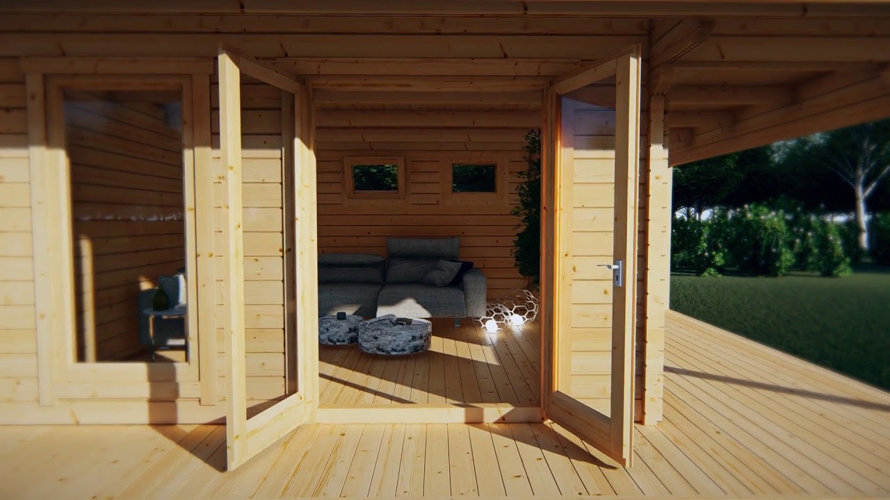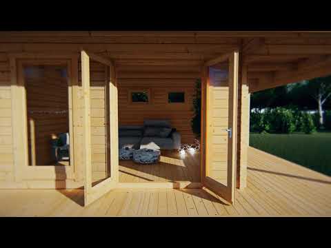 “Hansa Lounge XXL” verfügt über einen 14,5 m² großen Freizeitraum, einen 7,5 m² großen Abstellraum für Fahrräder, Möbel und Gartengeräte und eine 16 m² große überdachte Terrasse. Doppelt verglaste Fenster sowie 44 mm dicke Wandbohlen sind im Standardpreis enthalten. Wenn Sie das Dach und den Fußboden isolieren und eine kleine Heizung einbauen, können Sie dieses Gartenhaus ganzjährig nutzen.